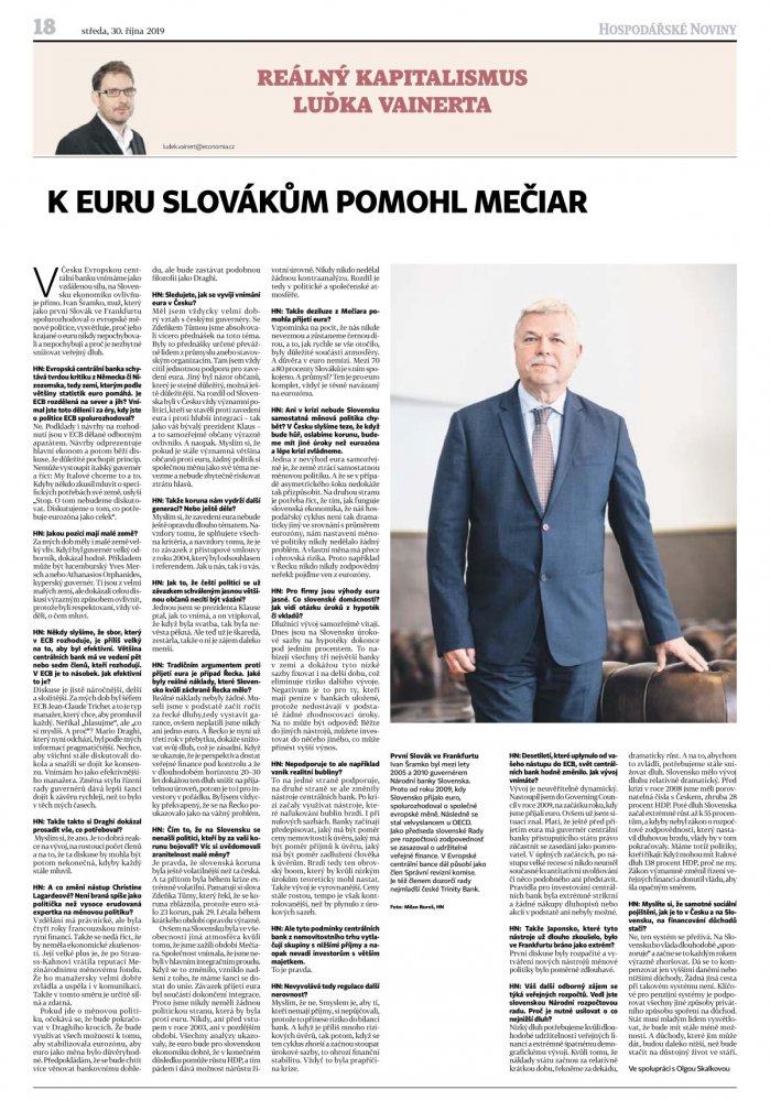 Celostránkový rozhovor s Ivanem Šramkem v Hospodářských novinách